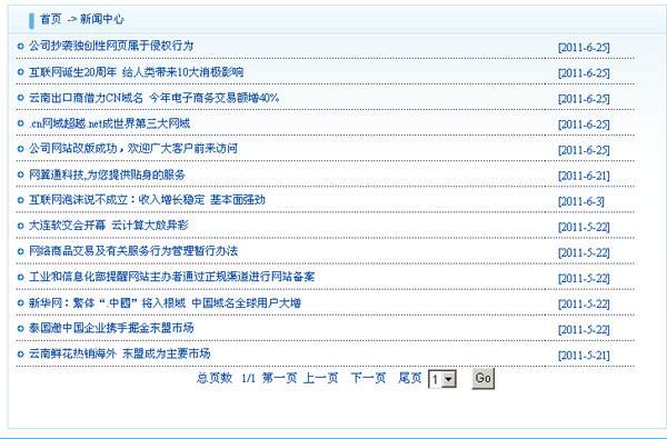 a、列表內(nèi)容 是指顯示為以標(biāo)題進(jìn)行顯示的列表內(nèi)容,這也是最常見的顯示方式之一,只要是選擇顯示不列表內(nèi)容的欄目,在首頁、二級(jí)欄目,均以內(nèi)容標(biāo)題列表的形式展示,如下圖:
